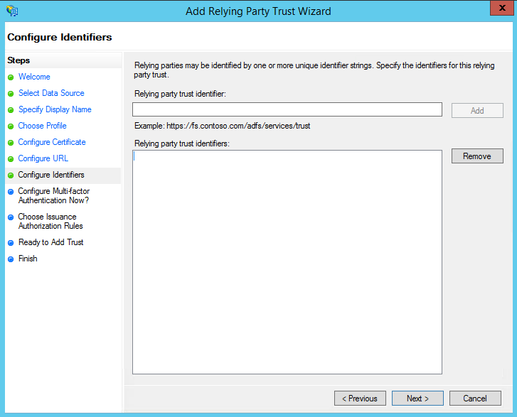 07. Na próxima tela, adicione um identificador confiável da confiança do partido de subdominio.dominio.com, substituindo o subdomínio e do domínio.